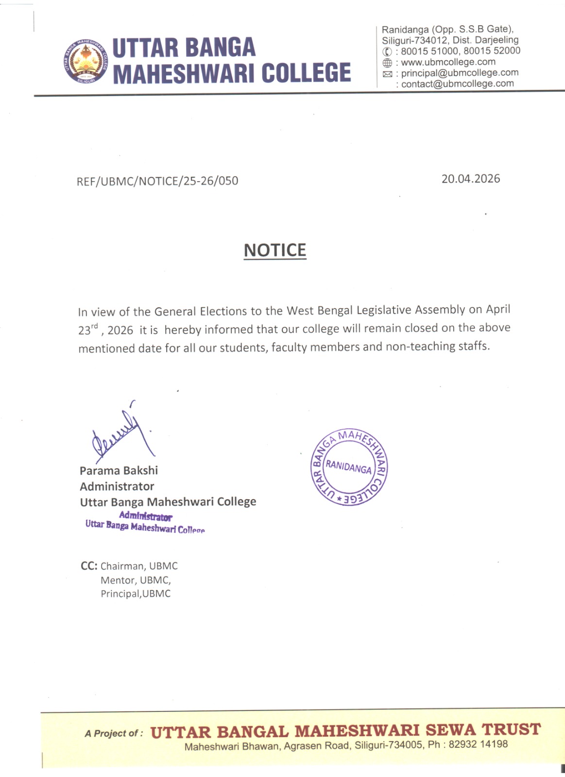 REF/UBMC/NOTICE/25-26/050